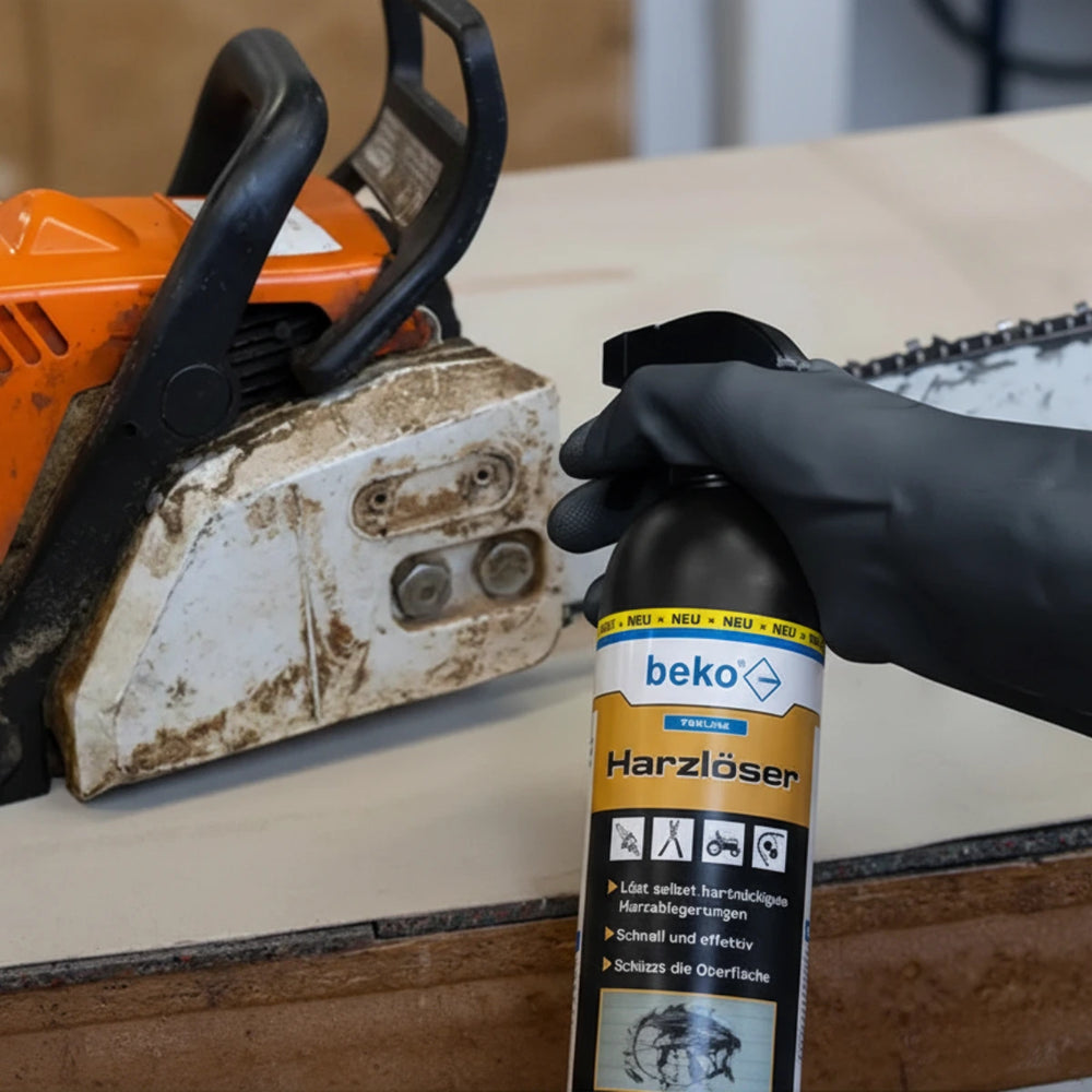 Der beko Harzlöser 750 ml ist genau für die Fälle gedacht, in denen Werkzeuge, Maschinen und Arbeitsmittel nicht einfach nur oberflächlich verschmutzt sind, sondern mit hartnäckigen Harzablagerungen, klebrigen Rückständen oder verharzten Oberflächen zu kämpfen haben. Gerade im täglichen Einsatz in Werkstatt, Maschinenwartung, Garten- und Landschaftsbau sowie Forstwirtschaft entstehen solche Rückstände schneller, als man denkt: Sägen, Schneidwerkzeuge, Kettenbereiche, Führungsteile, Maschinenkomponenten und metallische Bauteile verlieren durch Harz, Baumsaft oder ähnliche organische Rückstände an Funktion, Laufruhe und Sauberkeit. Wer hier konsequent reinigt, verlängert die Nutzungsdauer seiner Ausrüstung, erhält die Arbeitsqualität und reduziert unnötigen Verschleiß.